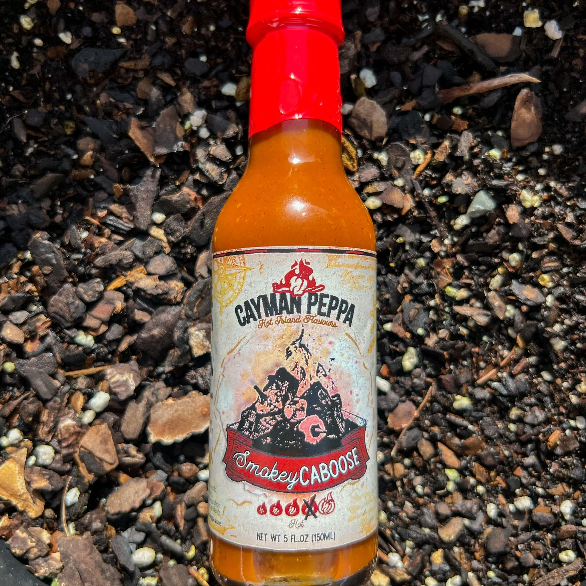 A caboose is a historic Caymanian cooking method that consisted of an uncovered wooden grill with a layer of sand on the bottom. Using this concept of open flames, we’ve charred vegetables and scotch bonnet peppers to add a smokey flavour to this hot sauce.