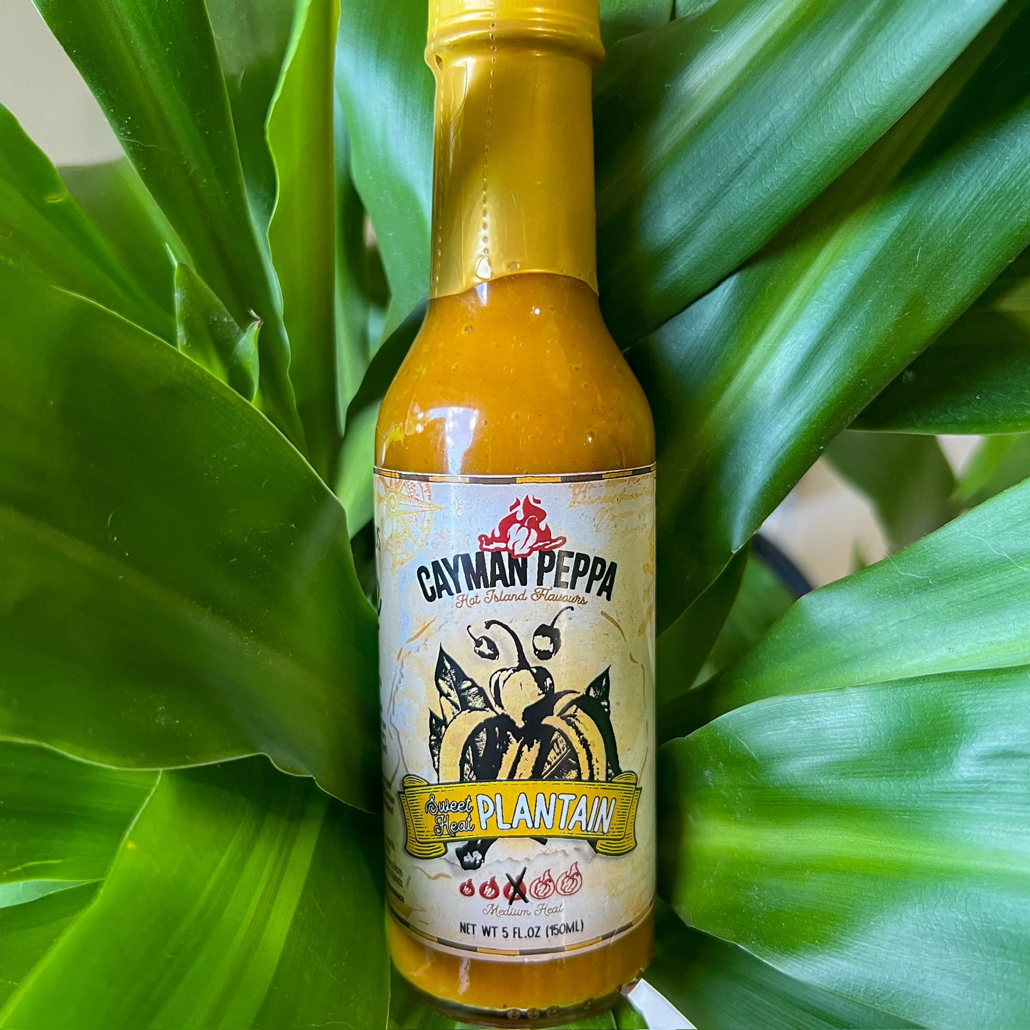 Plantain is a popular side dish in Caribbean culture, so we created this unique hot sauce that has a complex take on sweet heat. Ripe plantains are fried until caramelised and then blended along with local scotch bonnet peppers and Jamaican spices, such as curry powder and allspice.
