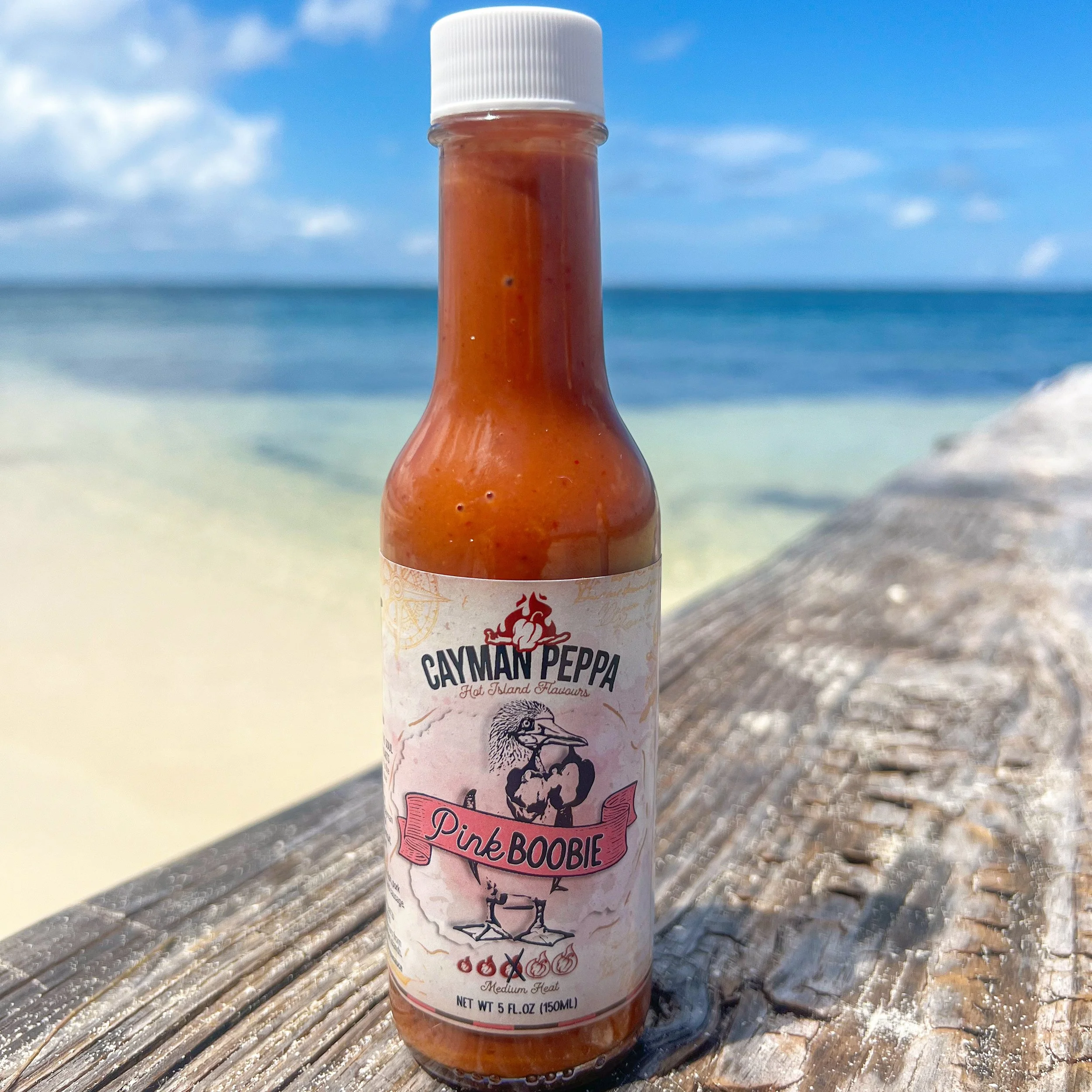 Our native boobie birds have multi-coloured feet, so we decided to give them pink ones to bring awareness and support of the CI Breast Cancer Foundation. Throughout October, we will donate CI$4 of every bottle sold to the CIBCF. Along with scotch bonnet peppers, this sauce features fruity and tart notes from guava and sorrel. Only available at The Edgy Vedge, GOODNESS, Bon Vivant and Cayman Pantry in October 2024.